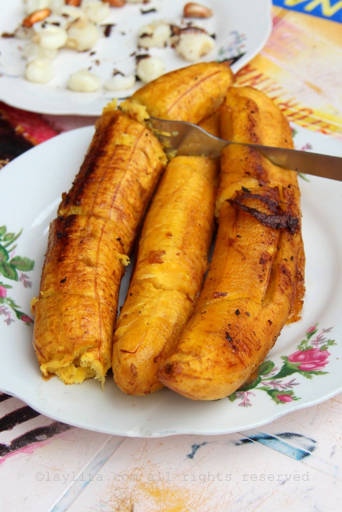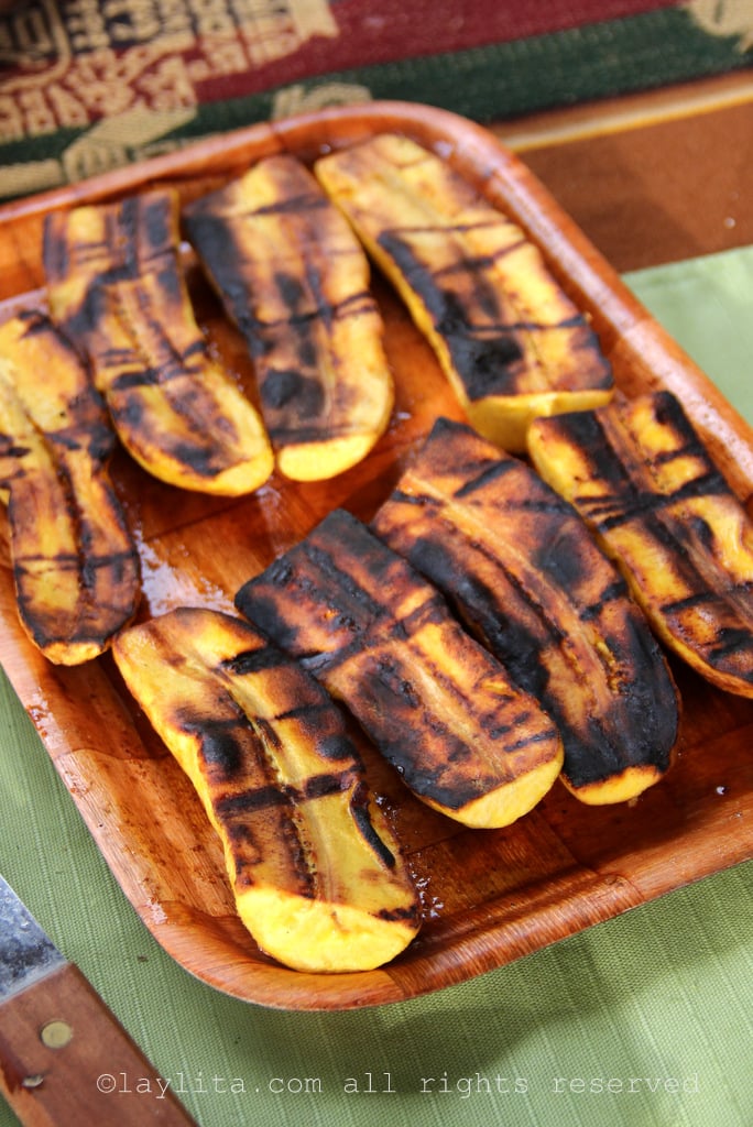 Emborrajados/lampreados/platanos maduros asados or ripe plantain yuminess: Emborrajados are fried ripe plantain slices (and sometimes ripe bananas) that are flattened, add a slice of cheese in between a couple of these flattened ripe plantins, dip this ripe plantains sandwich in batter, and deep fry it. Maduro lampreado, also known as gato encerrado, are very similar, except that the plantains are kept whole and sliced lengthwise in the middle, stuffed with cheese, dipped in batter and fried. Maduros asados are grilled or roasted plantains (or also fried), this is mainly ripe plantains but sometimes green ones also, roasted on a small grill, and usually served with a slice of cheese.