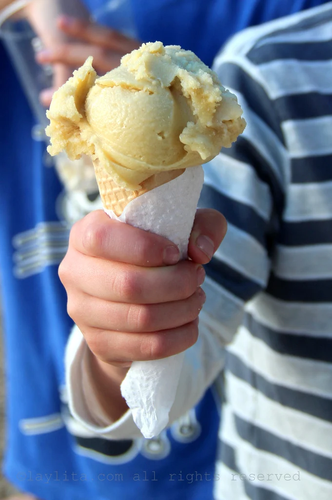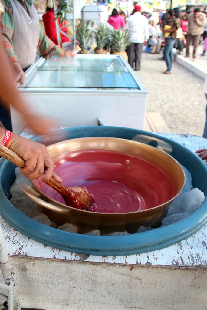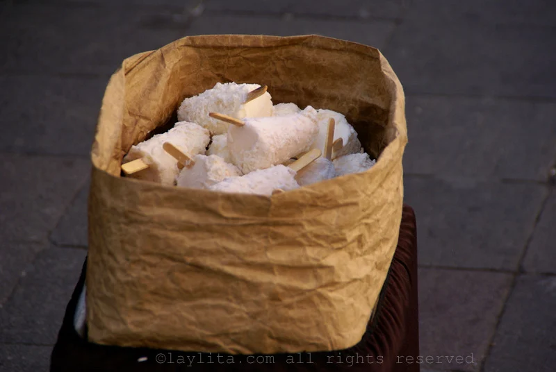 Helados or ice cream: We also love ice cream in Ecuador, from the famous helados de paila or fruit sorbets made by hand in large copper bowls, to the more humble helado de palo or basic popsicle that almost every little tienda has for sale. Some of my favorite helado de paila flavors are naranjilla (also known as lulo), mora or blackberry, maracuya or passion fruit, taxo (known as banana passion fruit), and ron pasas (rum raisin). My favorite helados de palo flavors are the basic helado de leche con canela o cinnamon milk, mixed fruit salad, coconut, and helados de gelatina or gelatin ones. I also highly recommend helados de Salcedo, a layered popsicle of multiple flavors including cream, naranjilla, mora, taxo, and more.