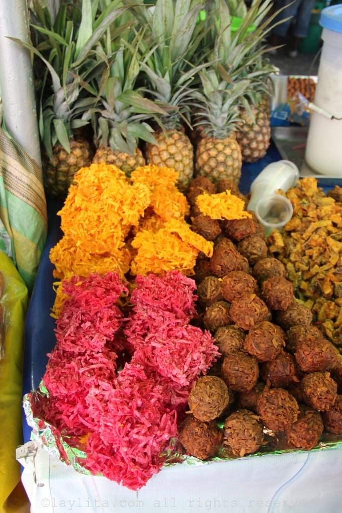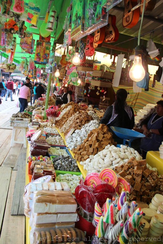 Cocadas/bocadillos/alfeñiques/ dulce de guayaba/etc or the sweet treats: Ecuadorians love sweets and there is no shortage of local sweet treats for sale at markets and on street corners. Some of my personal favorites include cocadas, a caramelized coconut macaroon candy, bocadillos o sweet squares of panela or piloncillo melted with peanuts, alfeñiques – also called melcochas – are sticky (or crunchy) toffee like candies made with panela/piloncillo, and dulce de guayaba or guava paste candies.